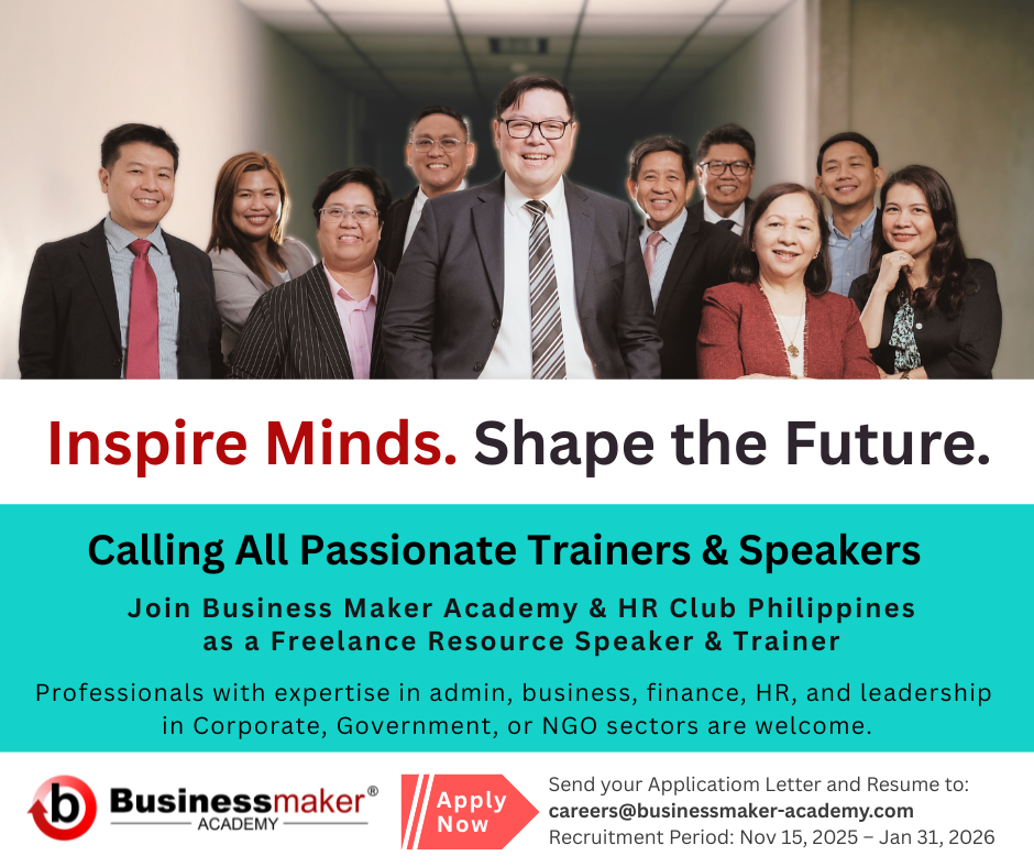 HR Club Philippines was started by Businessmaker Academy in 2008 as a community support group for HR Practitioners and Business owners. Since then, we have conducted thousands of seminars, webinars, conferences and meet ups. We have also created tools to help employers professionally manage their people.